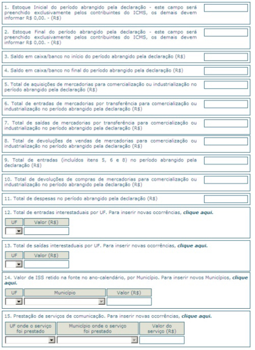 Para nós, PJs, a maioria desses campos são zerados. Principalmente os relacionados a mercadorias, estoques, funcionários, doações eleitorais, receitas do exterior, etc.